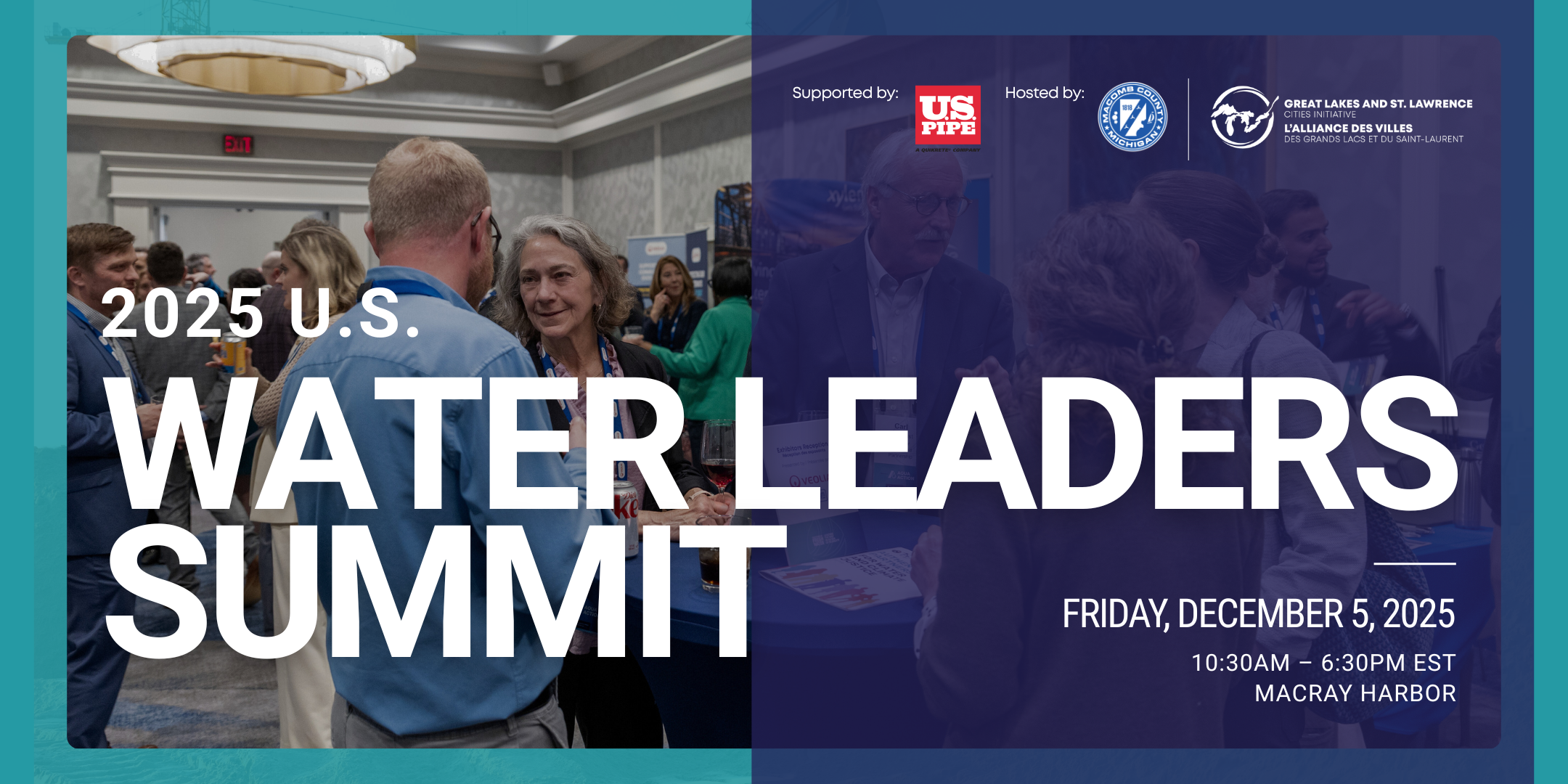 The Great Lakes and St. Lawrence Cities Initiative is hosting its first-ever in-person U.S. Water Leaders Summit in Macomb County, Michigan, 30 minutes northeast of Detroit, on Friday, December 5, 2025. Generously hosted by Macomb County and supported by Title Sponsor U.S. Pipe, this unique event will bring together public officials, tribal leaders, entrepreneurs, business and nonprofit leaders, and environmental stakeholders from across the Western Great Lakes to explore community-based strategies to transform the Great Lakes economy, steward our freshwater resources, and prepare for future challenges and opportunities.